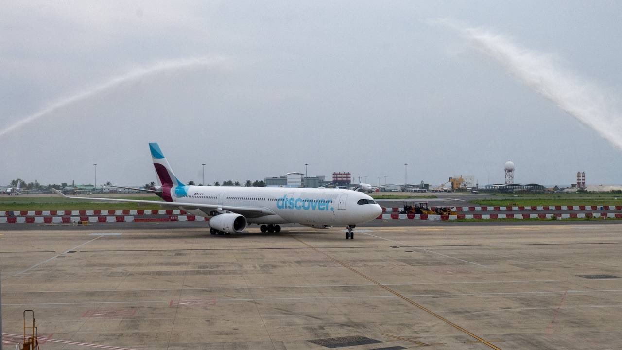 ޓާމިނަލް 1 އިން ޑިސްކަވާ އެއާލައިންސަށް ހިދުމަތް ދޭން ފެށުމުގެ ގޮތުން ވަނީ އެއާލައިންގެ ކައުންޓަރުތައް ރަސްމީކޮށް ހުޅުވައި، އެ އެއާލައިނުން ފުރި ފަސިންޖަރުންނަށް ހަދިޔާ ދީފައެވެ. އަދި ޓާމިނަލް 1 އަށް ކައިރި ކުރި ޑިސްކަވާ އެއާލައިންސްގެ ފުރަތަމަ ފްލައިޓުން ރާއްޖެ އައި ފަސިންޖަރުންނަށް ވަނީ ހޫނު މަރުހަބާއެއް ކިޔާފައެވެ.