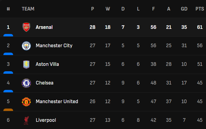 މިމެޗުން ލިބުނު މޮޅާއެކު އާސެނަލަށް ވަނީ ޕްރިމިއާ ލީގް ތާވަލްގައި އެއްމެޗް އިިތުރަށްކުޅެ 5 ޕޮއިންޓްގެ ލީޑެއް ލިބިފައެވެ.