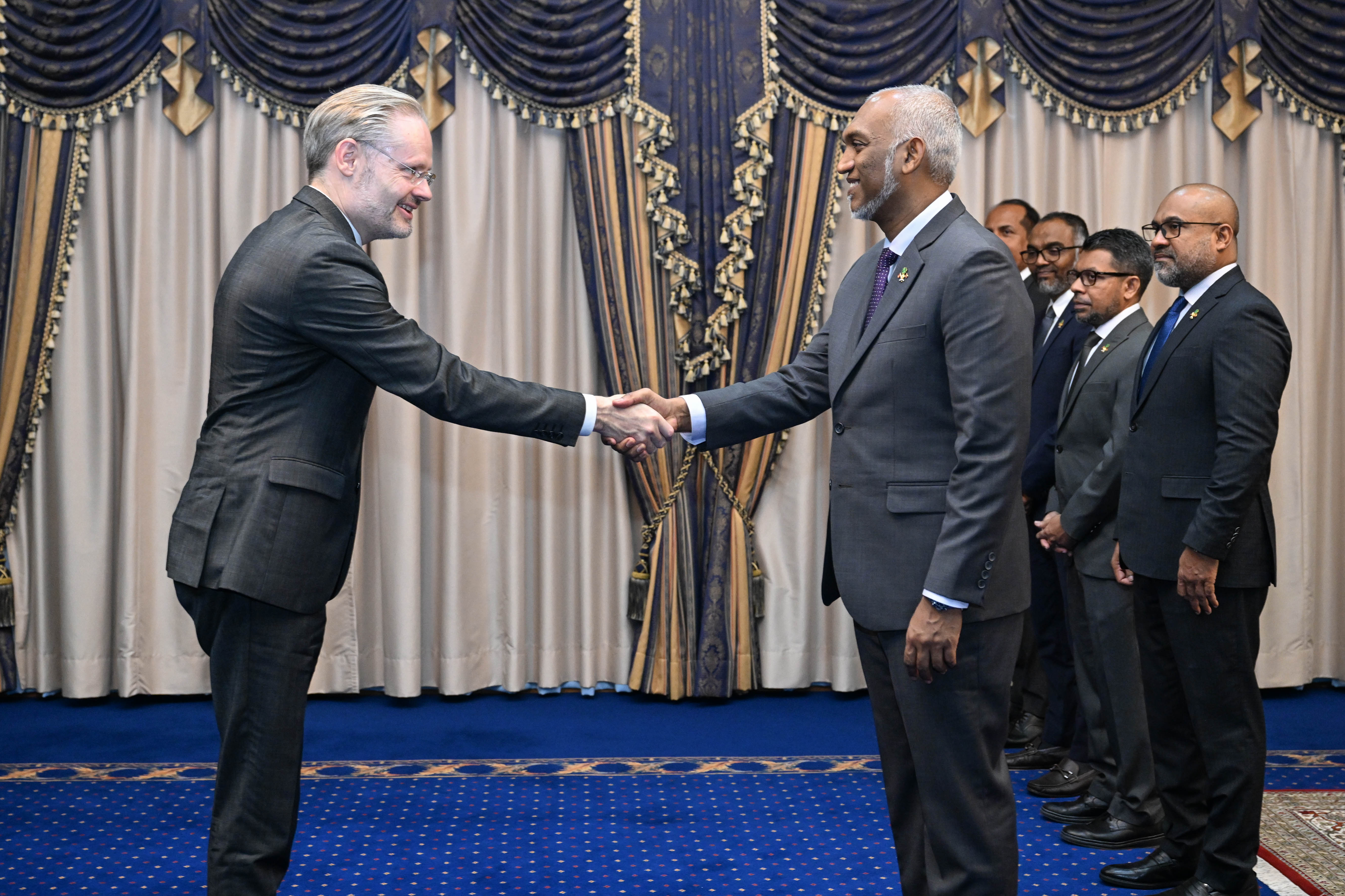 ޑެންމާކު ސަރުކާރުން ދިވެހިރާއްޖެއަށް ކަނޑައެޅުއްވި އައު ނޮން-ރެސިޑެންޓް ސަފީރު، ހިޒް އެކްސަލަންސީ ރަސްމުސް އެބިގޯޑް ކްރިސްޓެންސެން، އެމަނިކުފާނުގެ ސަފީރުކަމުގެ ފަތްކޮޅު ރައީސުލްޖުމްހޫރިއްޔާ ޑޮކްޓަރ މުޙައްމަދު މުޢިއްޒުއަށް މިއަދު އަރުވައިފިއެވެ. މި ރަސްމިއްޔާތު އޮތީ މިއަދު ހެނދުނު ރައީސުލްޖުމްހޫރިއްޔާގެ އޮފީހުގައެވެ.