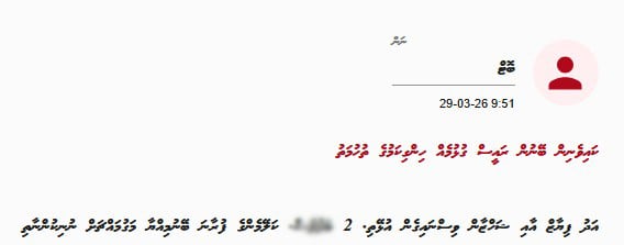 "ފިޔާޒް އާއި ޝަހްޒާން ވިސްނައިގެން އުޅޭތި. 2 ބޅވެސް. ކަލޭމެންގެ ފުރާނަ ބޭނުމިއްޔާ މަގުމައްޗަށް ނުނިކުންނާތި،" އެ ކޮމެންޓު ކުރި ފަރާތުން ބުނެފައިވެ އެވެ.
