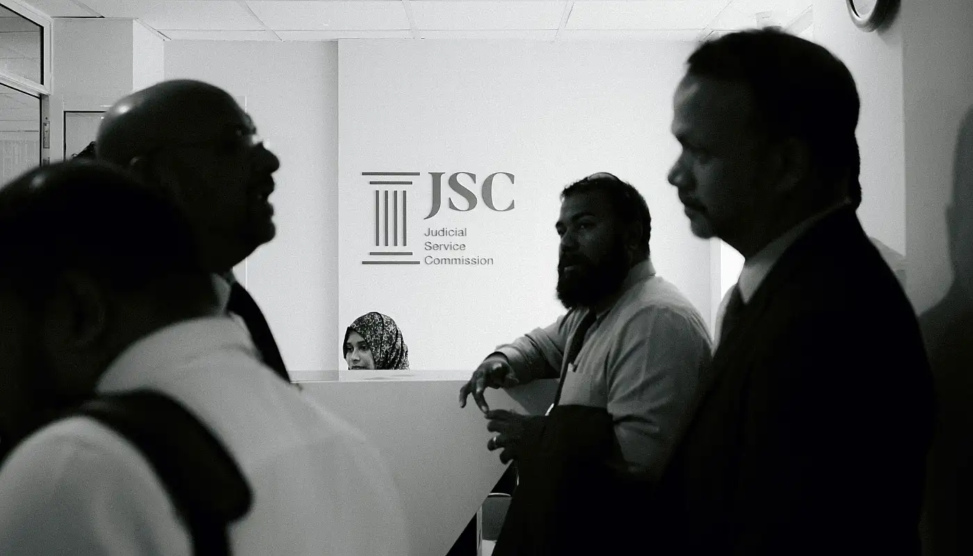 ގާނޫނުއަސާސީއަށް ގެނައި ބަދަލުގެ މައްސަލަ، ޖޭއެސްސީ މެދުވެރިކޮށް ހުއްޓުވީ އެވެ. ފަނޑިޔާރުން ސަސްޕެންޑްކުރަނީ އަމަލުކުރުން ފަސްކުރުމުގެ އަމުރާ ގުޅޭ އަޑުއެހުމަށް ކުޑަތަންވެފައި ވަނިކޮށެވެ. އޭގެ ފަހުން ސުޕްރީމް ކޯޓުގެ ހަތަރު ފަނޑިޔާރަކު ބަދަލުކޮށްފި އެވެ. ބެންޗުގެ އަގުލަބިއްޔަތެވެ. ބެންޗު ފުރިހަމަކުރި ފަހުން ވެސް ތިން މަހެވެ. އެކަމަކު އެންމެ އަޑުއެހުމެއް ވެސް ތާވަލުކުރާކަށް ނޫޅެ އެވެ.