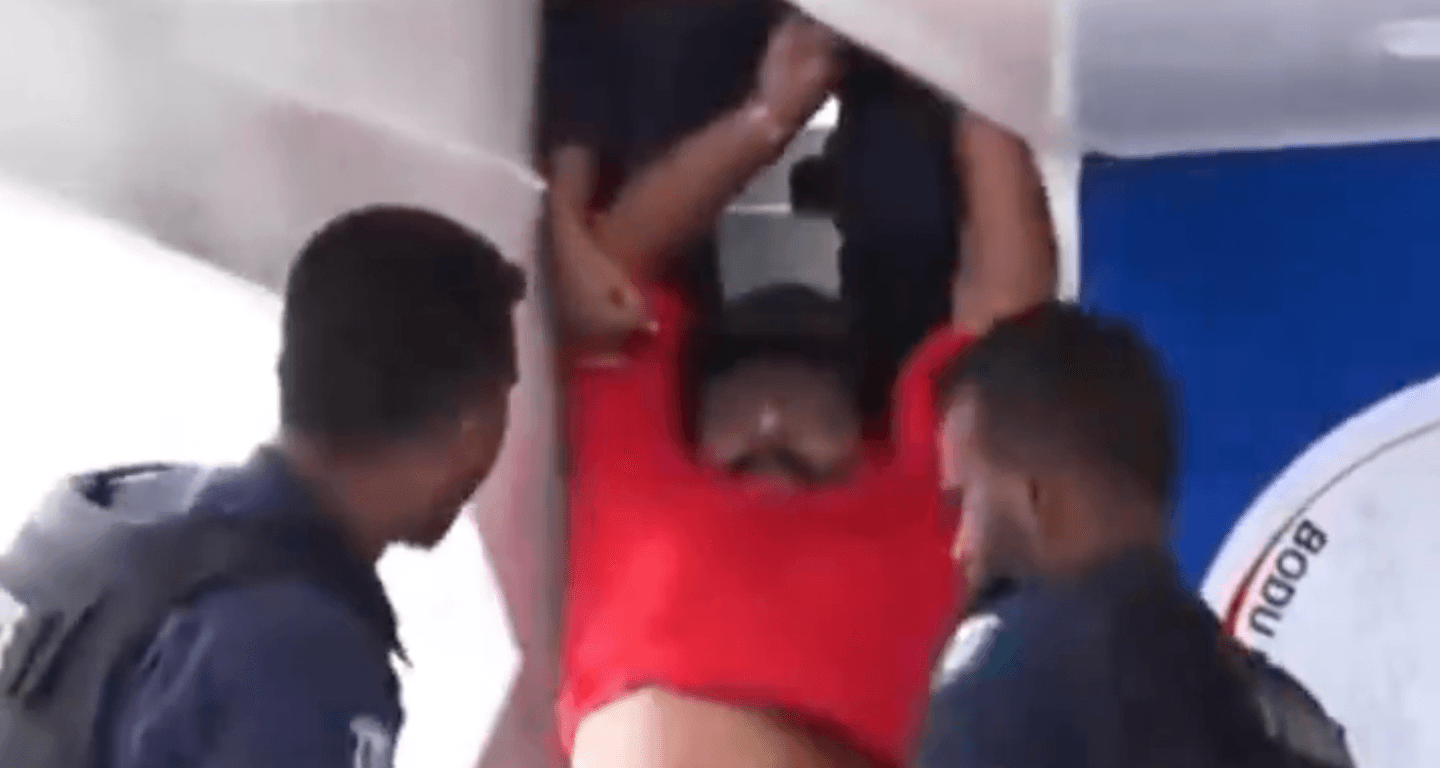 ފުލުހުން ދޯނިތަކަށް އެރުމާއިއެކު މުޒާހާރާ ހޫނުވެގެންދިޔައިރު ބަޔަކު ހައްޔަރުކުރާ މަންޒަރު ފެންނަ ވީޑިއޯތަކެއް މިހާރު އަންނަނީ ދައުރުވަމުންނެވެ.