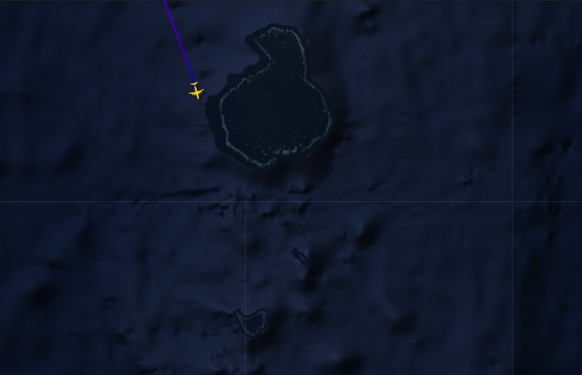 ޔޫއޭއީގެ ފުޖައިރާ ސިޓީގެ އެއާޕޯޓުން ފުރައިގެން އެ ބޯޓު އައްޑޫއާ ދިމާލަށް ދަތުރުކުރަނީ: މި ހިސާބުން ބޯޓުގެ ޓްރާންސްޕޯންޑަރު ވަނީ ނިވާލާފަ ---- ފޮޓޯ: ފްލައިޓް ރާޑަރު