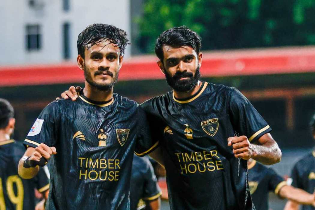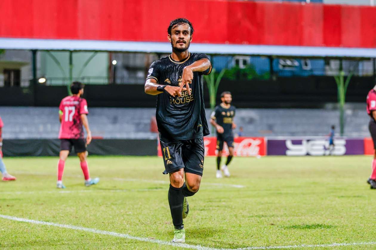 އީގަލްސް އަށް މި މެޗުގައި ތިން ވަނަ ލަނޑު ޖަހައިދިން ސިއްކޮ އުފާފާޅުކުރަނީ.--- ފޮޓޯ: ރާއިފް ޔޫސުފް / އަދަދު ސްޕޯޓްސް