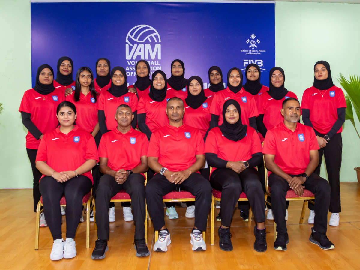 ގައުމީ އަންހެން ވޮލީ ޓީމުގެ ސްކޮޑުގައި ހިމެނޭ ކުޅުންތެރިންނާއި ކޯޗިން ސްޓާފުން.--- ފޮޓޯ: ވޮލީބޯލް އެސޯސިއޭޝަން އޮފް މޯލްޑިވްސް