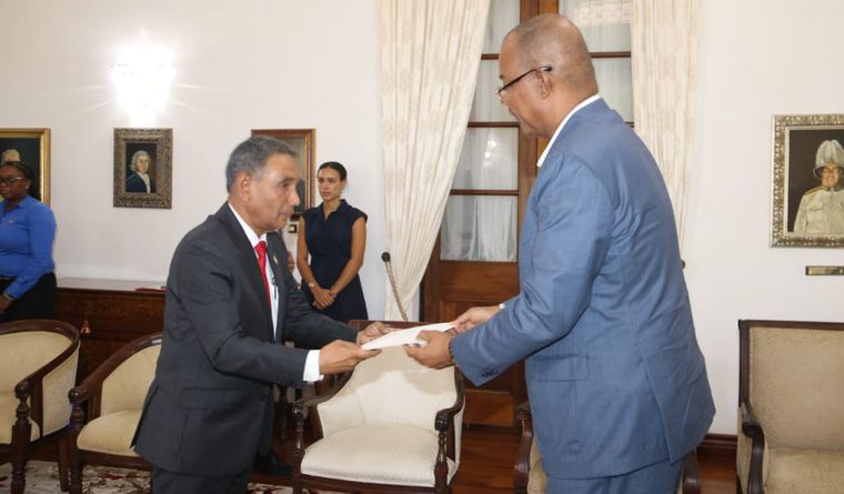 ދިވެހިރާއްޖެއިން ސީޝެލްސްއަށް ކަނޑައެޅުއްވި ނޮން-ރެސިޑެންޓް ސަފީރު، މަސްއޫދު އިމާދު އެމަނިކުފާނުގެ ސަފީރުކަމުގެ ފަތްކޮޅު ސީޝެލްސްގެ ރައީސް ޑރ. ޕެޓްރިކް ހާމިނީއަށް އަރުވައި، އެ މަގާމާ ރަސްމީކޮށް ހަވާލުވެވަޑައިގެންފިއެވެ. ސީޝެލްސްގެ ވެރިރަށް ވިކްޓޯރިއާގައި ހުންނަ ރިޔާސީ ގަނޑުވަރު، ސްޓޭޓް ހައުސްގައި މިއަދު ހެނދުނު ބޭއްވި ހާއްސަ ރަސްމިއްޔާތެއްގައި ފަތްކޮޅު އެރުވުމަށްފަހު، ސަފީރު މަސްއޫދު ވަނީ ރައީސުލްޖުމްހޫރިއްޔާ ޑރ. މުހައްމަދު މުއިއްޒުގެ ފަރާތްޕުޅުން ސީޝެލްސްގެ ރައީސަށާއި ސަރުކާރަށް އަދި ރައްޔިތުންނަށް ހެޔޮއެދުންތައް އަރިސްކުރައްވާފައެވެ.
