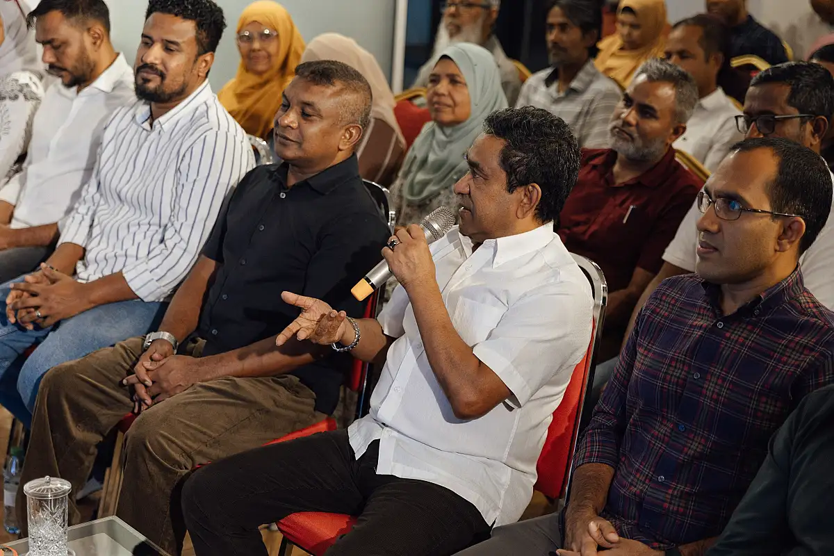 "ދެ އަހަރު ވެގެން ދިޔައިރު، މިކަމުގައި އެޅުނު ގާނޫނީ ފިޔަވަޅެއް ނެތް. އަނެއްކާވެސް އެ ވާހަކަ އެ އިއާދަ އެ ކުރަނީ ކީއްވެގެންތޯ؟... ރައްޔިތުން ގަބޫލު ކުރަންވީ މިއީ ހަމަ ދަޅަދައްކަން ދައްކާ ވާހަކަކަން. އޮފްދާރުކުރުން މީނާގެ [ރައީސްގެ] ކަމަކީ. އެ ނޫން އެއްވެސް ކަމެއް ނުކުރޭ،" ޔާމީން ވިދާޅުވި އެވެ.