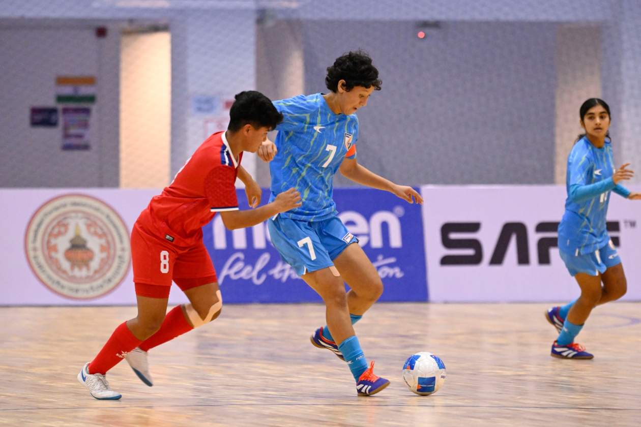 ސާފް ފުޓްސަލް ޗެމްޕިއަންޝިޕްގެ އަންހެން ޑިވިޝަނުގައި ނޭޕާލާއި އިންޑިއާ ކުޅުނު މެޗުގެ ތެެރެއިން.---- ފޮޓޯ: ސާފް