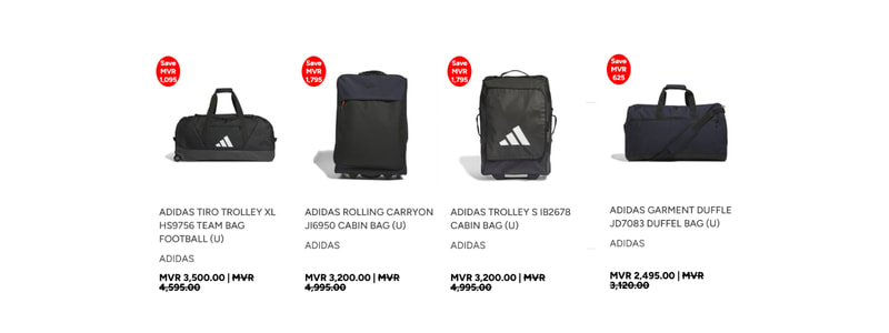 އެޑިޑާސް، ނައިކީ، ޕޫމާ، ރީބޮކް، ރޮކްސީ، ކްއިކްސިލްވާ، ބިލަބޮންގް، ޑީސީ، މެންގޯ، އަދި ލެވީސް ފަދަ ޕްރީމިއަމް ބްރޭންޑްތަކުގެ އުފެއްދުންތައް މި ސޭލުގައި ލިބެން އެބަ ހުއްޓެވެ. މި އުފެއްދުންތަކުން 80 ޕަސެންޓާހަމައަށް ޑިސްކައުންޓު ލިބެ އެވެ. އެހެންވެ، މިއީ ދޫކޮށްލެވޭ ވަރަށް ވުރެ "ފައްކާ ހަފުތާ" އެކެވެ.