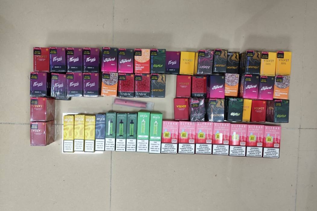 އެގޮތުން ބަލައިފާސްކުރި ސައިކަލެއްގެ މަޑިދަށުން 80 ވޭޕް ކާޓްރިޖު އަދި ބަލައިފާސްކުރި ގެއެއްގައި ހުރި އެޕާޓްމަންޓަކުން 59 ވޭޕާއި ކާޓްރިޖް ހޯދި ކަމަށް ފުލުހުން ބުނެ އެވެ. މި މައްސަލާގައި ޖޫރިމަނާ ކޮށްފައިވަނީ ކިތައް މީހުން ކަމެއް ފުލުހުން ނުބުނެ އެވެ.
