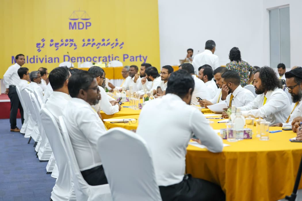 ޗެއާޕާސަން ޒިންމާ އަދާކުރާނެ މީހަކާއި އިންތިހާބު ބާއްވާނެ ތާރީހެއް ކަނޑައަޅަން އެމްޑީޕީގެ ގައުމީ މަޖިލިސް އެއްވަނީ ޗެއާޕާސަން ޒިންމާ އަދާކުރާނެ މީހަކާއި އިންތިހާބު ބާއްވާނެ ތާރީހެއް ކަނޑައަޅަން އެމްޑީޕީގެ ގައުމީ މަޖިލިސް އެއްވަނީ