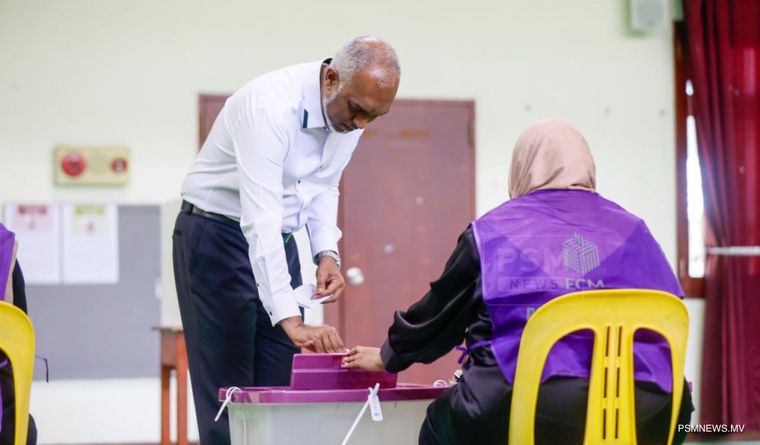 ދިވެހި ރައްޔިތުން ނުކުމެ، ވޯޓުލުމުގެ ގާނޫނީ ހައްގު އަދާކުރެއްވުމަށް ރައީސް ޑރ. މުހައްމަދު މުއިއްޒު މިއަދު އެދިވަޑައިގެންފިއެވެ.