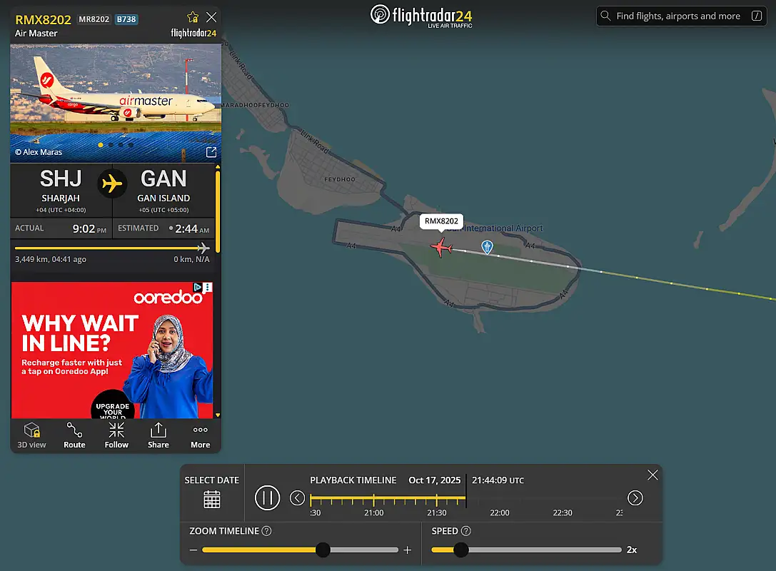 ވީކިހިނެއް؟ - ފްލައިޓް ރާޑަރުން ދައްކާ ގޮތުގައި އައްޑުއަށް މި ޝިޕްމަންޓް ގެނައީ ބުރާސްފަތި ދުވަހުގެ ރޭ މެންދަމު 2:44 ހާއިރެވެ.