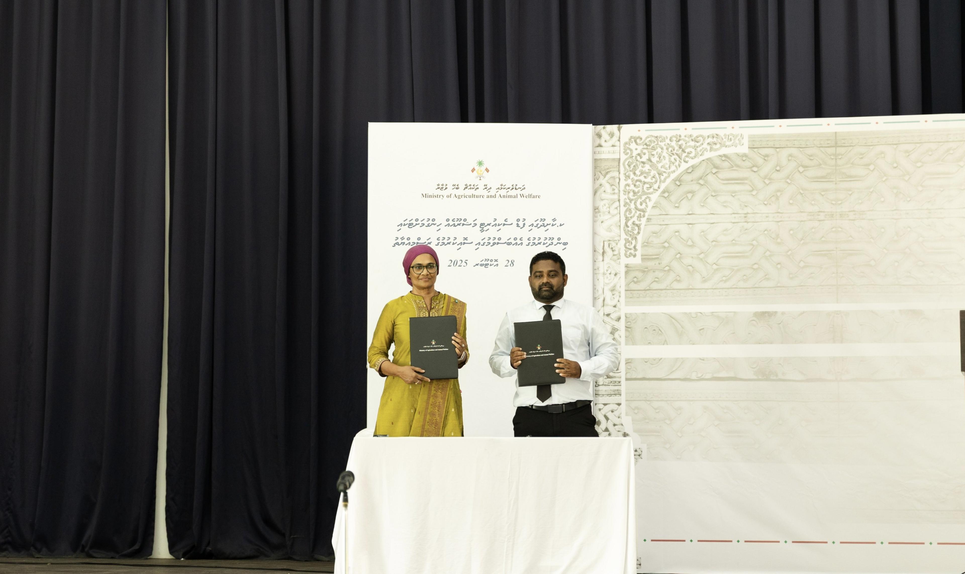 ފުޑް ސެކިއުރިޓީ(ކާނާގެ ޔަޤީންކަން އިތުރު ކުރުމަށް) ކ. ކާށިދޫގެ ބިމުން 1 ހެކްތަރުގެ ބިން ދަނޑުވެރިކަމާއި ދިރޭތަކެއްޗާއި ބެހޭ ވުޒާރާއަށް ދޫކުރުމުގެ އެއްބަސްވުމުގައި ސޮއިކޮށްފިއެވެ.