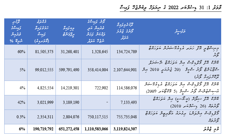 އޮޑިޓް ރިޕޯޓްގައި ބުެނފައިވަނީ 3.1 ބިލިއަން ރުފިޔާގެ ލޯނު ސްކީމުގެ ދަށުން އަނބުރާ ދައްކަންޖެހޭ މުއްދަތު ހަމަވުމާއެކު، 2022 ވަނަ އަހަރުގެ ނިޔަލަށް ލިބިފައިވަނީ 651.3 މިލިއަން ރުފިޔާއެވެ. އެއަހަރުގެ ނިޔަލަށް ނުލިބިވަނީ 190.7 މިލިއަން ރުފިޔާއެވެ.