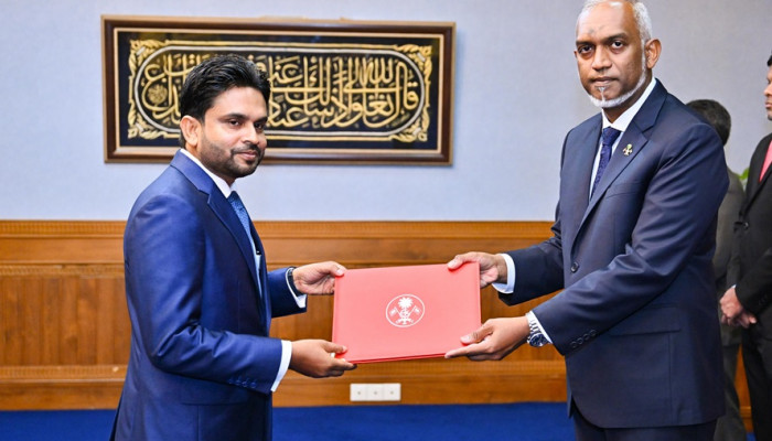 މިއަދު މެންދުރު ރައީސުލްޖުމްހޫރިއްޔާގެ އޮފީހުގައި ބޭއްވެވި ޚާއްޞަ ރަސްމިއްޔާތެއްގައި އަލްއުސްތާޛު ޙުސައިން ޝަހީދަށް މަޤާމުގެ ހުވައި ލައިދެއްވީ، ދިވެހިރާއްޖޭގެ ސުޕްރީމް ކޯޓުގެ ފަނޑިޔާރު އޮނަރަބަލް އަލްއުސްތާޛާ ޢާއިޝާ ޝުޖޫން މުޙައްމަދުއެވެ. އަދި، މަޤާމަށް ޢައްޔަން ކުރެއްވި ކަމުގެ ލިޔުން، ރައީސުލްޖުމްހޫރިއްޔާ ވަނީ އަލްއުސްތާޛު ޙުސައިން ޝަހީދާ ހަވާލުކުރައްވާފައެވެ.