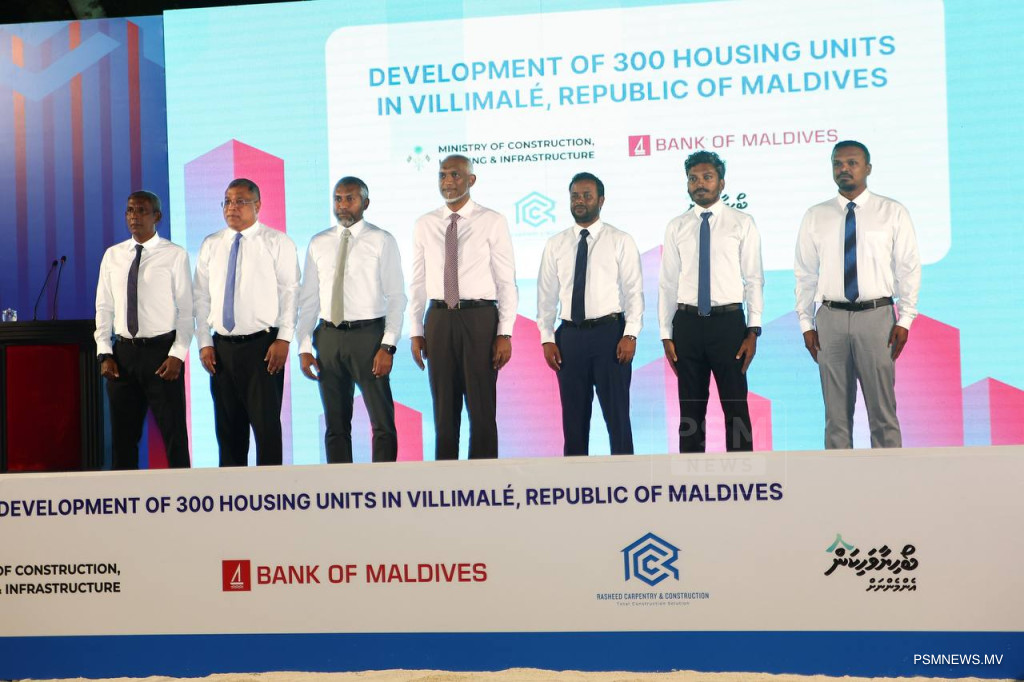 ބޭންކް އޮފް މޯލްޑިވްސްގެ ވިލިމާލެ 300 ހައުސިން ޔުނިޓުގެ އެފޯޑަބަލް ހައުސިން މަޝްރޫޢުގެ ބިންގާ އެޅުމަށް ވިލިމާލޭގައި ބޭއްވި ޚާއްސަ ރަސްމިއްޔާތުގައި ރައިސުލްޖުމްހޫރިއްޔާ ޑރ.މުޙައްމަދު މުޢިއްޒު ބައިވެރިވެ ވަޑައިގެންނެވިއެވެ. އަދި މިނިސްޓަރ އޮފް ކޮންސްޓްރަކްޝަން ހައުސިންގ އެންޑް އިންފްރާސްޓްރަކްޗަރ ޑރ. އަބްދުﷲ މުއްތަލިބާއި, ވަޒީރުންނާއި، ރައްޔިތުންގެ މަޖިލީހުގެ މެންބަރުންގެ އިތުރުން ބީއެމްއެލްގެ ޗެއަޕަރސަން އަޙްމަދު އަލީ ހަބީބާއި، ބީއެމްއެލްގެ ސީއީއޯ މުޙައްމަދު ޝަރީފާއި، ބީއެމްއެލް އެފޯޑަބަލް ހޯމް ލީސިންގެ އެމްޑީ ޙަސަން ޝާމްއާއި، އާރްސީސީގެ ޗެއާމަން ކާނަލް ރިޓަޔާޑް މުޙައްމަދު ނާޒިމްވެސް މިރަސްމިއްޔާތުގައި ބައިވެރިވެ ވަޑައިގެންނެވިއެވެ.