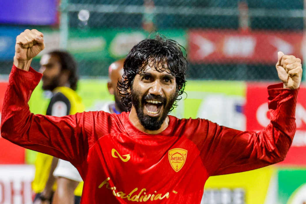 އާރްއާރްސީގެ ދެ ގޯލު ޖެހި ޝަނާން ލަނޑު ޖެހުމަށް ފަހު އުފާފާޅުކުރަނީ.---- ފޮޓޯ: ރާއިފް ޔޫސުފް / އަދަދު ސްޕޯޓްސް