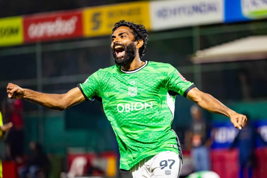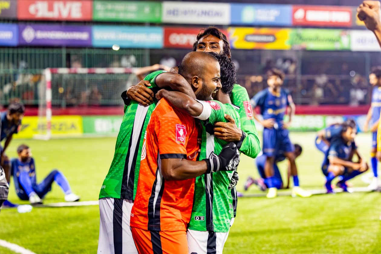 ނައިވާދޫން ޕެނަލްޓީގައި މޮޅުވުމުން އުފާފާޅުކުރަނީ.--- ފޮޓޯ: އަދަދު ސްޕޯޓްސް / އިމޭޖަސް.އެމްވީ