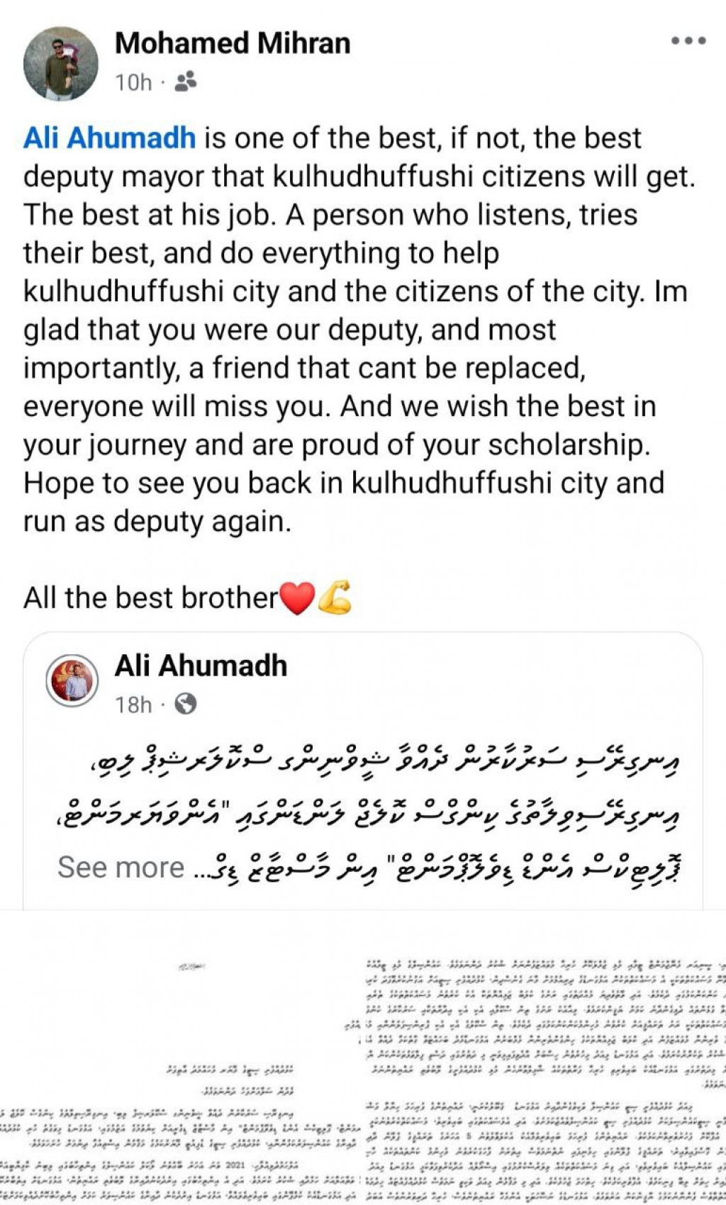ކުޅުދުއްފުށީ ސިޓީ ކައުންސިލްގެ ޑެޕިއުޓީ މޭޔަރުގެ މަގާމުގައި އަލީ އަހުމަދު ހުންނަވައިގެން ސިޓީއަށް ކޮށްދެއްވި އިހްލާސްތެރި ހިދުމަތް ފާހަގަކޮށް ގިނަ ބަޔަކު އޭނާއަށް ޝުކުރުއަދާކުރަމުން އެބަދެ އެވެ.