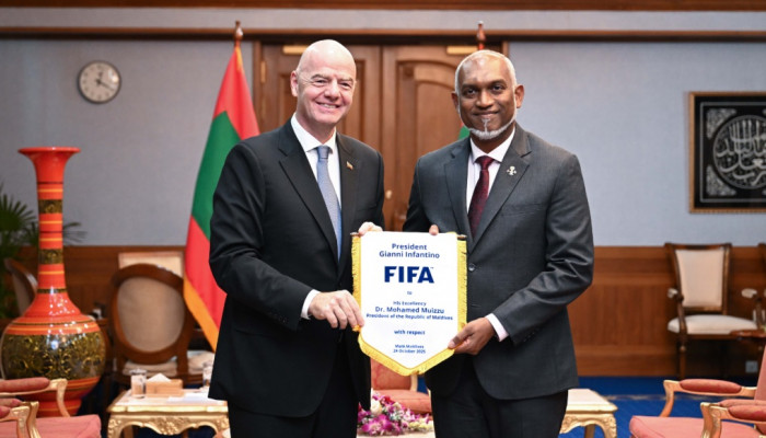 އިންޓަނޭޝަނަލް ފެޑެރޭޝަން އޮފް އެސޯސިއޭޝަން ފުޓްބޯލް (ފީފާ) ގެ ރައީސް ޖިއަނީ އިންފަންޓީނޯ، ރައީސުލްޖްމްހޫރިއްޔާ ޑޮކްޓަރ މުޙައްމަދު މުޢިއްޒުގެ އަރިހަށް އިހުތިރާމުގެ ޒިޔާރަތެއް ކުރައްވައިފިއެވެ.