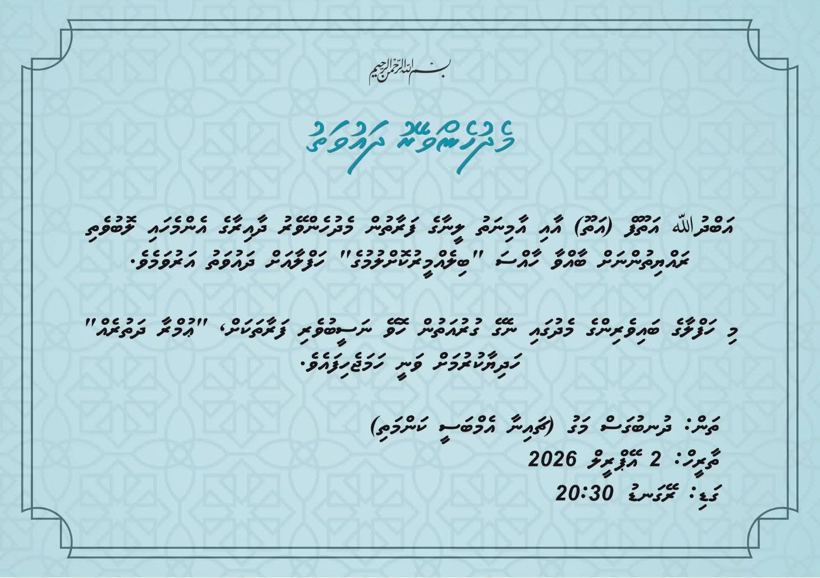 "މި ހަފްލާގެ ބައިވެރިންގެ މެދުގައި ނެގޭ ގުރުއަތުން ހޮވޭ ނަސީބުވެރި ފަރާތަކަށް، އުމްރާ ދަތުރެއް ހަދިޔާކުރުމަށް ވަނީ ހަމަޖެހިފައި،" މެދުހެންވޭރު ދާއިރާގެ ރައްޔިތުންނަށް ފޮނުވި މެސެޖުގައި ބުންޏެވެ.