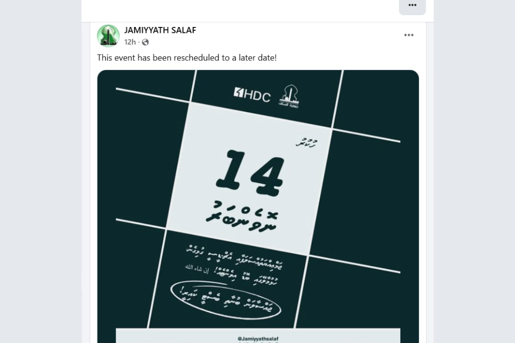 އެޗްޑީސީއާ ގުޅިގެން ބާއްވަން ނިންމާފައި އޮތް އެ ދަރުސް ފަސްކުރިކަން ސަލަފު ޖަމިއްޔާއިން މިހާރު ވަނީ އިއުލާނުކޮށްފަ އެވެ. ނަމަވެސް ފަސްކުރި ސަބަބެއް، އަދި ދެން ބާއްވާނެ ތާރީހެއް ހާމައެއް ނުކުރެ އެވެ.