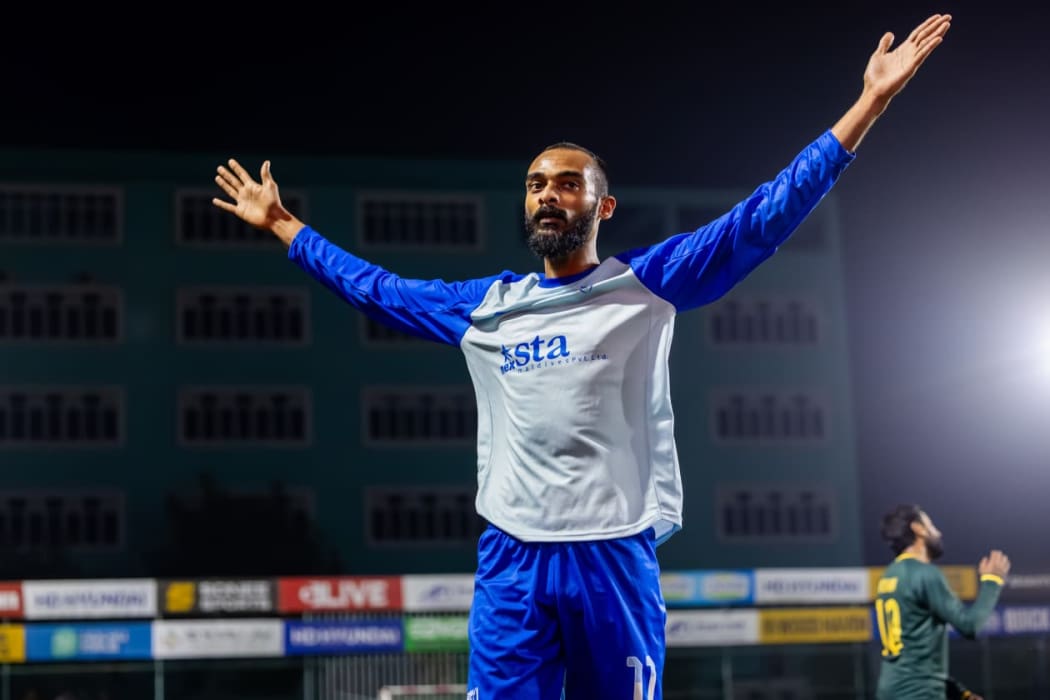 މަތިވެރި ޓީމުގެ ޝަފްރާޒް ރޭގެ މެޗުގައި ލަނޑު ޖެހުމަށް ފަހު އުފާފާޅުކުރަނީ.--- ފޮޓޯ: އިމޭޖަސް.އެމްވީ