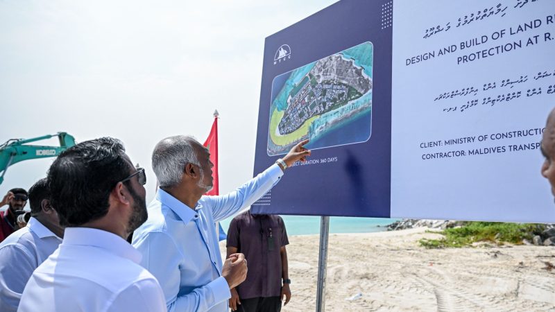 ރ. ދުވާފަރު ބިން ހިއްކުމާއި ގޮނޑުދޮށް ހިމާޔަތްކުރުމުގެ މަޝްރޫޢުގެ ޢަމަލީ މަސައްކަތް މިއަދު ފަށާފައިވާއިރު، މި މަސައްކަތް ފައްޓަވައިދެއްވީ އިމާރާތްކުރުމާއި ގެދޮރުވެރިކަމާއި ބިނާރާ ބެހޭ ވަޒީރު ޑރ. ޢަބްދުﷲ މުއްޠަލިބެވެ.