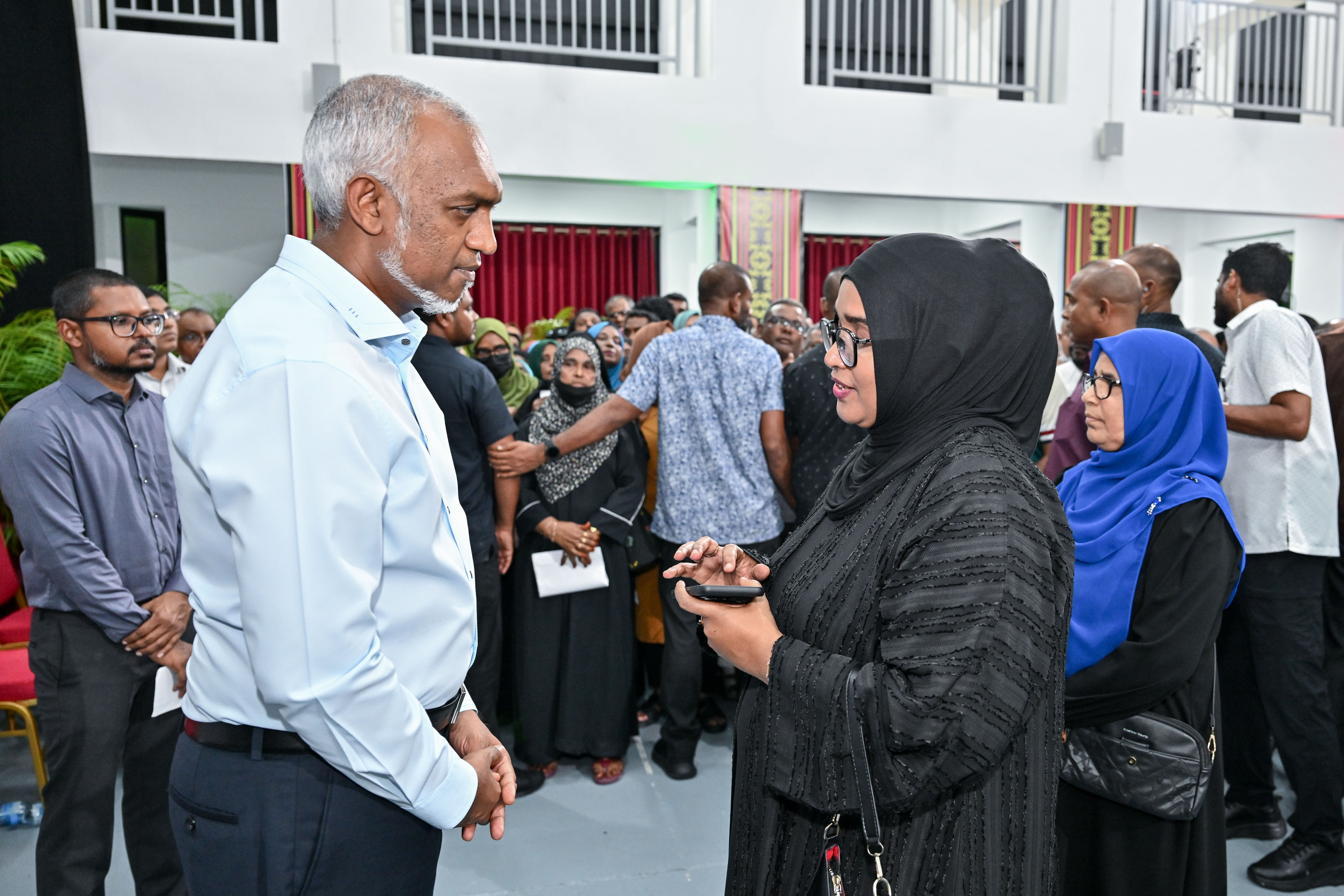 ހުޅުމާލެ ފޭސް ދޭއްގެ ރައްޔިތުންނާއި ބައްދަލްކުރެއްވުމަށް ރައީސުލްޖުމްހޫރިއްޔާ ޑރ. މުޙައްމަދު މުޢިއްޒު މިރޭ ބޭއްވެވި ބައްދަލްވުން ހަ ގަޑިއިރަށް ވުރެ ވެސް ދިގު ދެމިގެން ހިނގައްޖެ އެވެ.