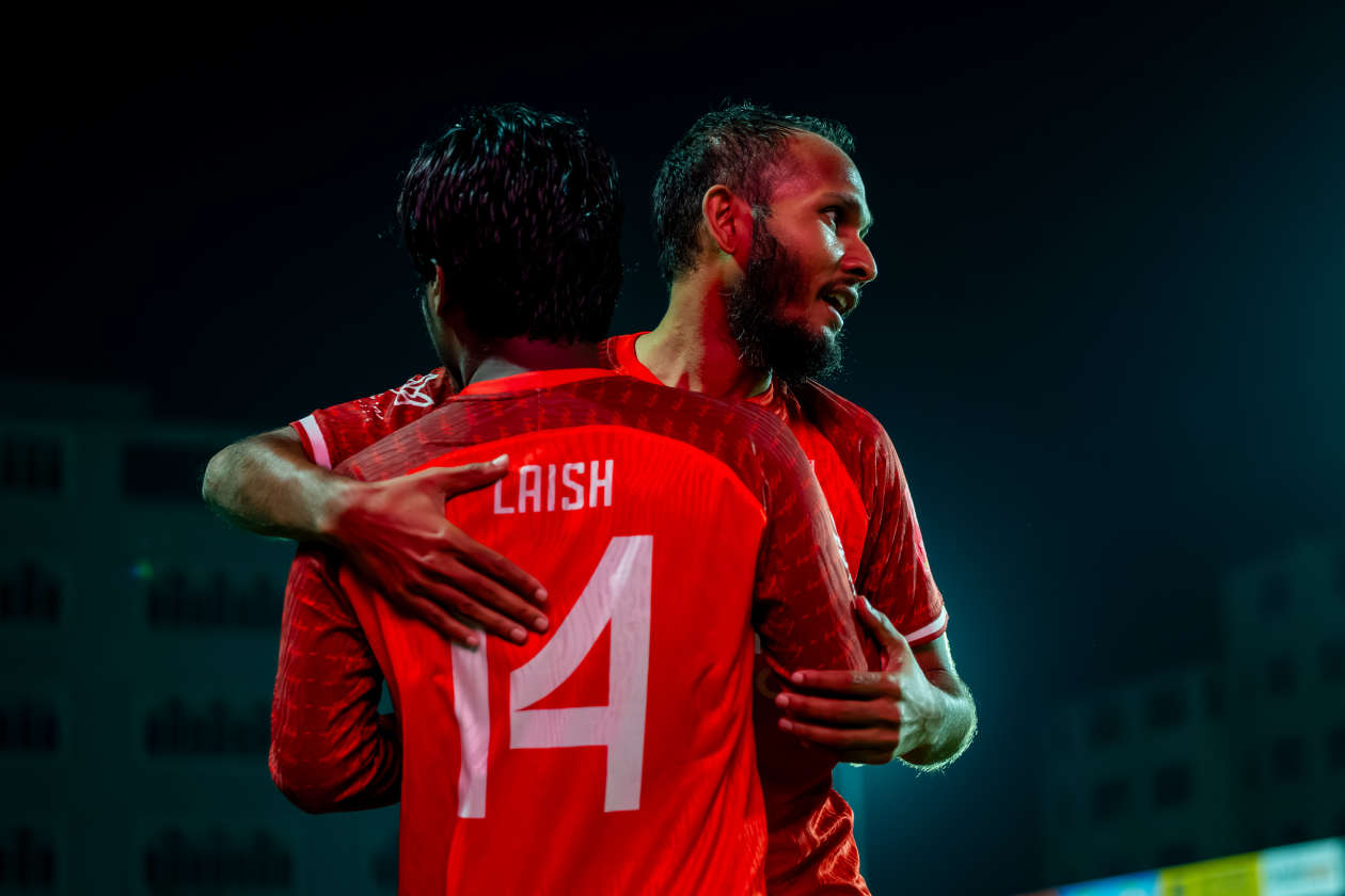 ރޭގެ މެޗުގައި ކެލާ އިން ލަނޑު ޖެހުމަށް ފަހު އުފާފާޅުކުރަނީ.--- ފޮޓޯ: އިމޭޖަސް.އެމްވީ