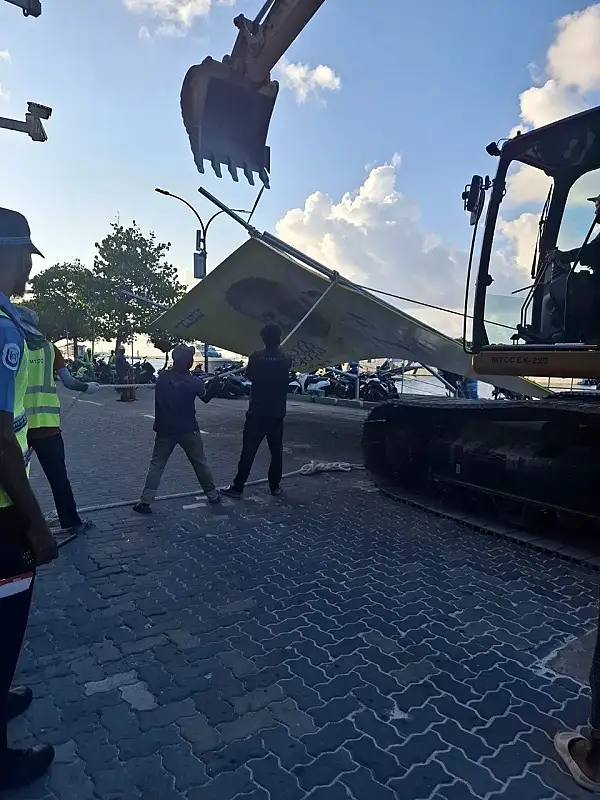 އާންމުވެފައިވާ ފޮޓޯތަކުން ފެންނަ ގޮތުގައި އެ ބިލްބޯޑު ހަލާކުކޮށްލީ އެމްޓީސީސީގެ މުވައްޒަފުންތަކެކެވެ.