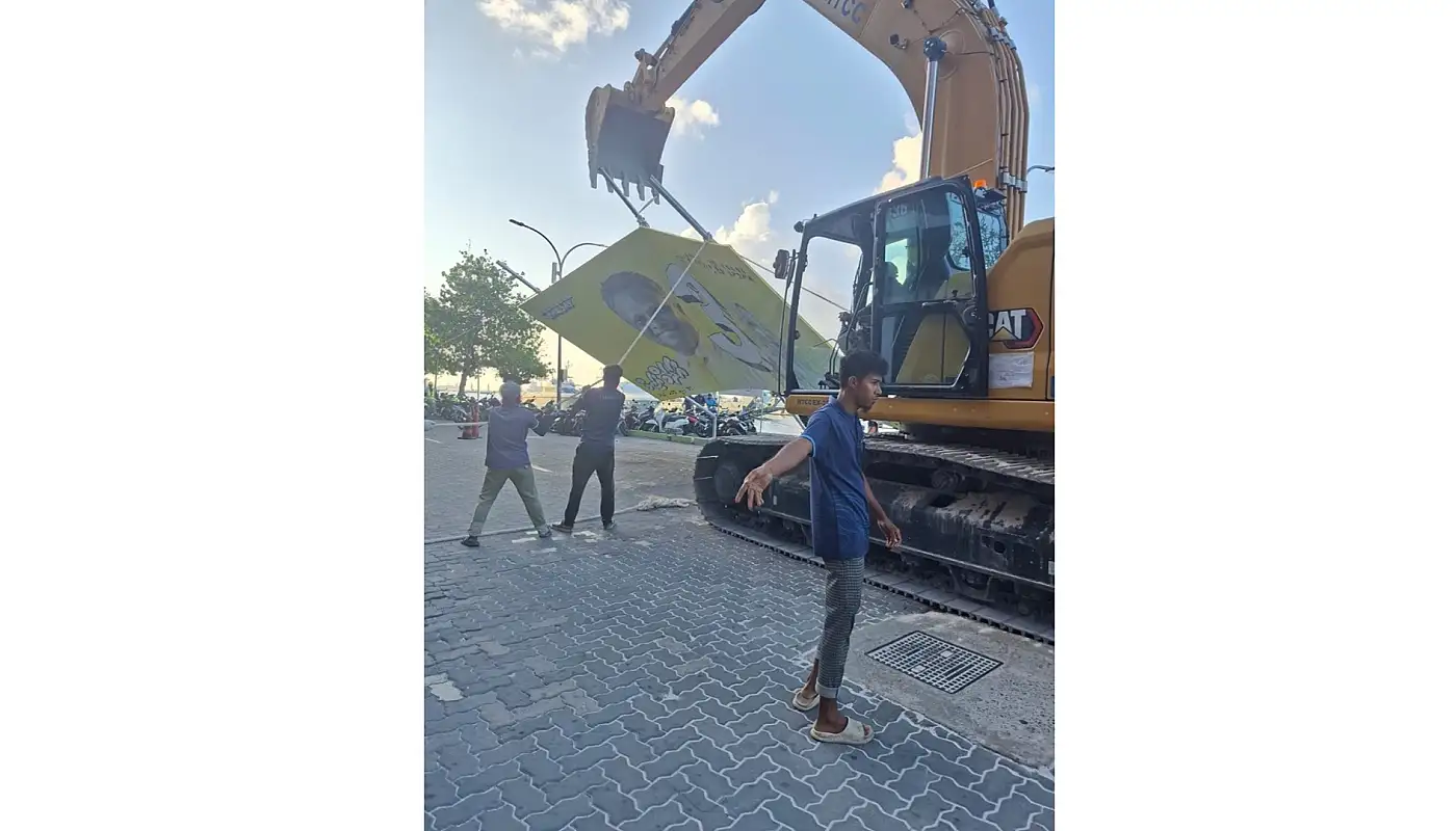 މާލޭ މޭޔަރު އާދަމް އާޒިމްގެ ކެމްޕޭން ބިލްބޯޑެއް، ސަރުކާރުން އެކްސްކަވޭޓަރެއް ބޭނުންކޮށްގެން ނަގައި ހަލާކުކޮށްލި މައްސަލައެއް ފެންމަތިވެއްޖެ އެވެ.