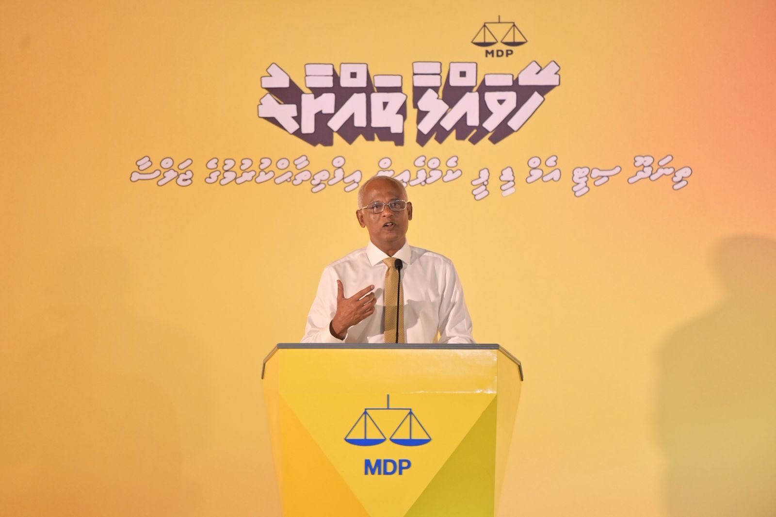 ރައީސް ސޯލިހް މިހެން ވިދާޅުވީ ރޭ ތިނަދޫ ސިޓީގައި ބޭއްވި އެމްޑީޕީގެ ކެންޕެއިން އިފްތިތާހު ކުރުމުގެ ޖަލްސާގައި ވާހަކަފުޅު ދައްކަވަމުންނެވެ.
