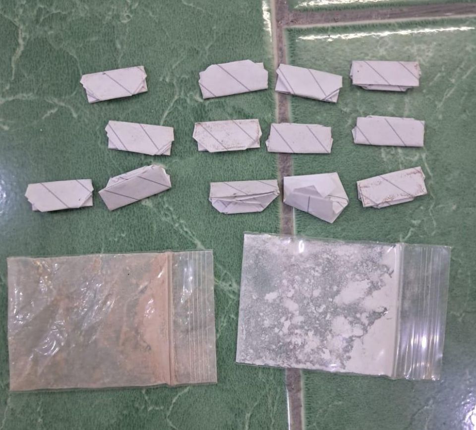 ފުލުހުން ބުނީ ހުޅުދުއްފާރު ޕޮލިސް ޕޯސްޓާއި ރަސްގެތީމު ޕޮލިސް ޕޯސްޓު އަދި ކައުންޓާ ނާކޮޓިކްސް އިންޓެލިޖެންސް ގުޅިގެން ހިންގި މި އޮޕަރޭޝަންގައި އެ މީހުން ހައްޔަރުކޮށް، އެ ގެ ބަލާ ފާސްކުރިއިރު މަސްތުވާތަކެތި ކަމަށް ބެލެވޭ އެއްޗެއްހުރި 15 ކަރުދާސްކޮޅާއި ދެ ރަބަރު ޕެކެޓު ފެނިފައިވާ ކަމަށެވެ. އަދި މަސްތުވާތަކެތި ބޭނުންކުރަން ގެންގުޅޭކަމަށް ބެލެވޭ ތަކެއްޗާއި 43،500 އަށް ވުރެ ގިނަ ރުފިޔާ ފެނިފައިވާކަމަށް ފުލުހުން ވަނީ ބުނެފައެވެ.