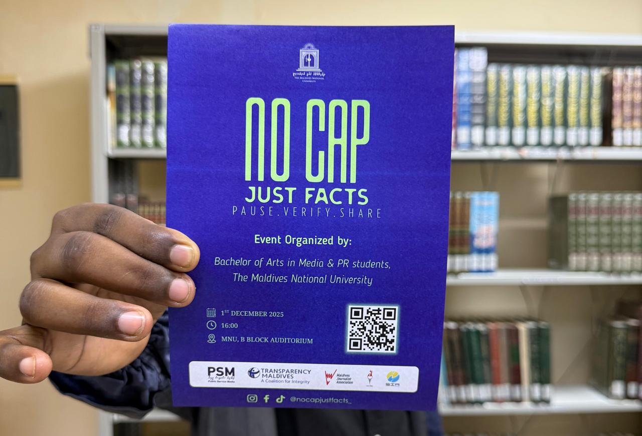 މައުލޫމާތު ކަށަވަރުކުރުމުގެ މުހިންމުކަމަށް ހޭލުންތެރިކުރުމަށް ޤައުމީ ޔުނިވަރސިޓީ، އެމްއެންޔޫގެ މީޑިއާ އެންޑް ޕަބްލިކް ރިލޭޝަންސް ޑިގްރީ ދަރިވަރުން ކުރިއަށްގެންދާ ކެމްޕެއިންގެ ދަށުން އަންނަ ހޯމަ ދުވަހު ފޯރަމެއް ބާއްވަން ތައްޔާރުވެއްޖެ އެވެ."ނޯ-ކެޕް ޖަސްޓް ފެކްޓްސް"ގެ ނަމުގައި މި ކެމްޕެއިން ފެށީ ސްކޫލް ނިންމާ ކުދިންނާއި ޒުވާނުން ހޭލުންތެރިކުރުމަށެވެ. ސްކޫލުތަކާއި ޔުނިވާސިޓީތަކުގެ ދަރިވަރުން އަދި އާއްމުންނަށް ވެސް ބައިވެރިވެވޭ ގޮތަށް އަންނަ ހޯމަ ދުވަހު ބާއްވާ ފޯރަމްގައި ނޭނގި ފަތުރާ ދޮގު މައުލޫމާތާއި ގަސްތުގައި ފަތުރާ ދޮގު މައުލޫމާތުގެ ތަފާތާއި އެ ފަދަ މައުލޫމާތުތައް ދެނެގަންނާނެ ގޮތްތައް ދަސްކޮށްދޭނެ އެވެ.ފެތުރުމުގެ ކުރިން އެއީ ސައްހަ މައުލޫމާތުކަން ކަށަވަރުކުރަން ބާރުއެޅުމުގެ މަގުސަދުގައި ހިންގާ މި ކެމްޕެއިންގެ ދަށުން ބާއްވާ ފޯރަމްގައި މައުލޫމާތު ދޭނީ އެ ދާއިރާއެއްގެ ތަޖުރިބާކާރުންނެވެ.