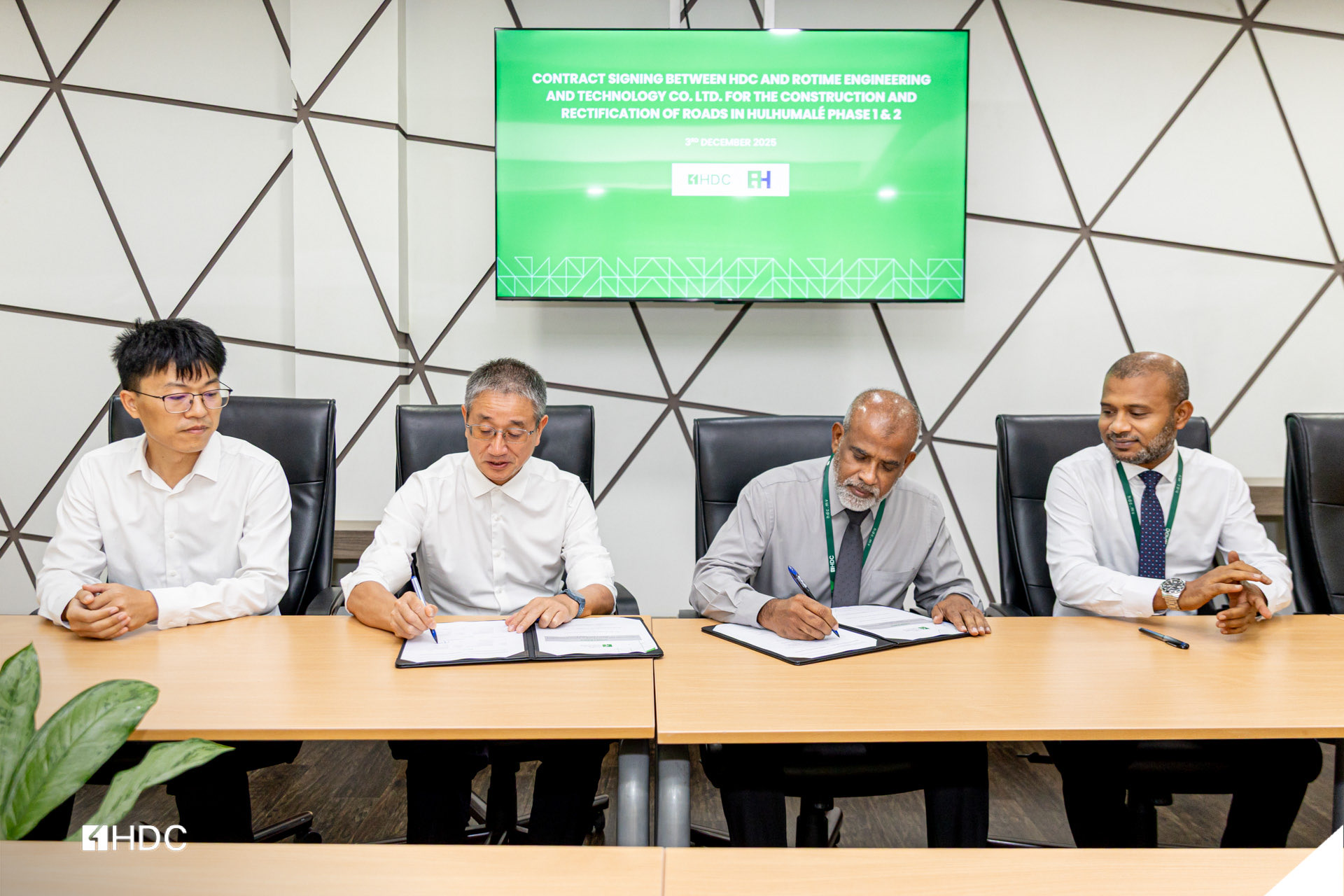 މި މަސައްކަތުގެ އެއްބަސްވުމުގައި އެޗްޑީސީގެ ފަރާތުން ސޮއިކުރެއްވީ، މެނޭޖިންގ ޑިރެކްޓަރ އަލީ ޒުހައިރެވެ. އަދި ރޮޓައިމްގެ ފަރާތުން ސޮއިކުރެއްވީ މެނޭޖިންގ ޑިރެކްޓަރ ޖޯވޭޑޮންގުއެވެ.