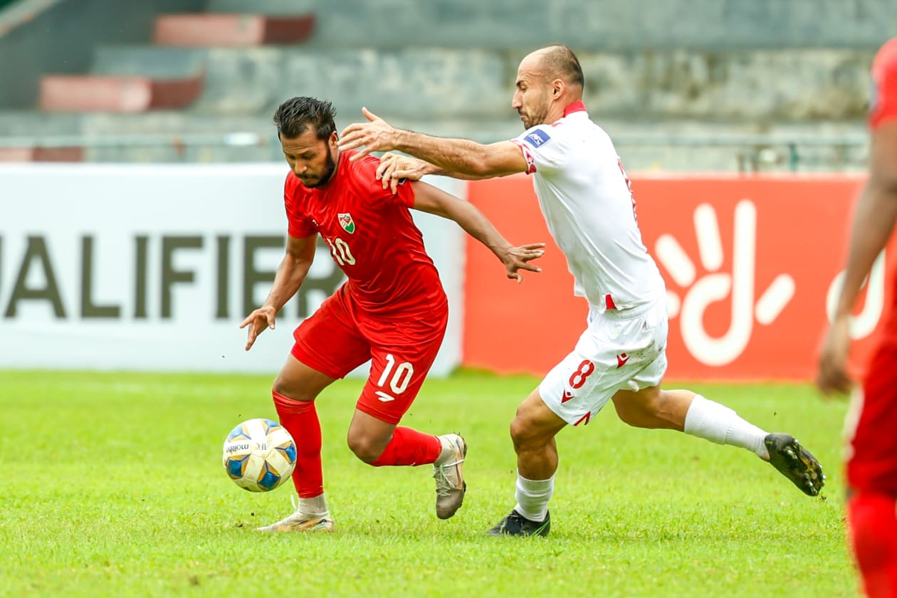 ގައުމީ ޓީމުގެ އައިހަމް: މިއަދުގެ މެޗުގައި ޖުމްލަކޮށް ބަލާއިރު މޮޅު ކުޅުމެއް ދެއްކި.--- ފޮޓޯ: ރާއިފް ޔޫސުފް/ އަދަދު ސްޕޯޓްސް