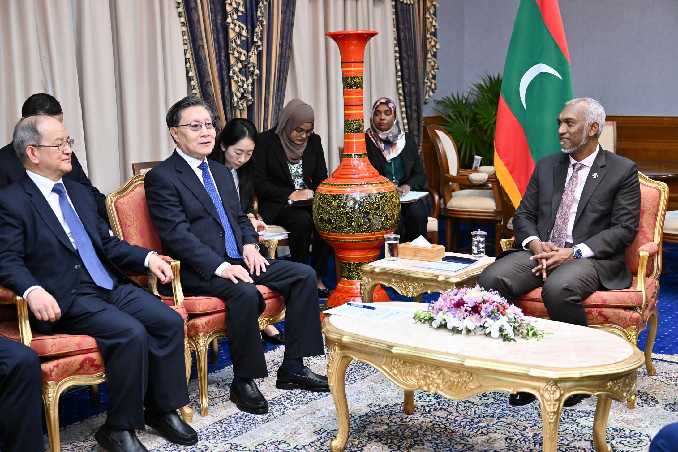 ޗައިނާގެ ނޭޝަނަލް ޕީޕަލްސް ކޮންގްރެސްގެ 14 ވަނަ ސްޓޭންޑިން ކޮމިޓީގެ ވައިސް ޗެއާމަން، މިސްޓަ ވޮންގް ޑޮންގްމިން، ރައީސުލްޖުމްހޫރިއްޔާ ޑރ. މުހައްމަދު މުއިއްޒުގެ އަރިހަށް އިހުތިރާމުގެ ޒިޔާރަތެއް ކުރައްވައިފި އެވެ.