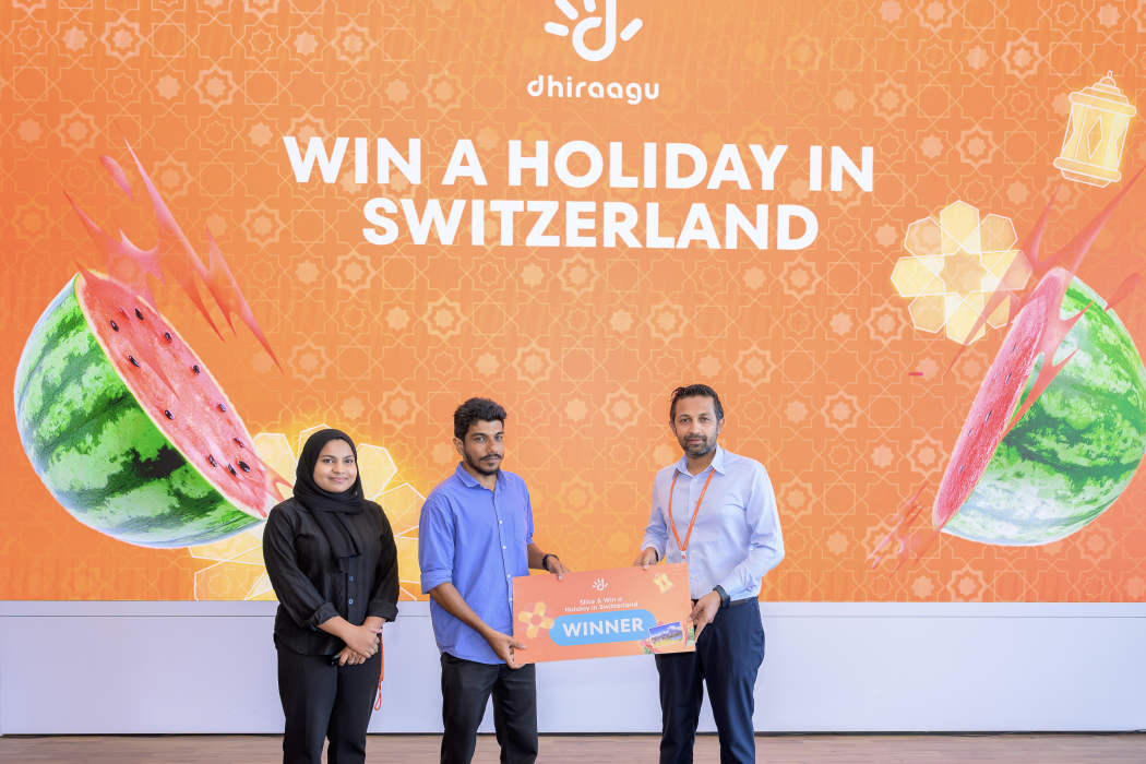 ސްވިޓްޒަލޭންޑް ދަތުރުގެ ނަސީބުވެރިޔާއާ ދިރާގުން އިނާމު ހަވާލުކޮށްފި ސްވިޓްޒަލޭންޑް ދަތުރުގެ ނަސީބުވެރިޔާއާ ދިރާގުން އިނާމު ހަވާލުކޮށްފި