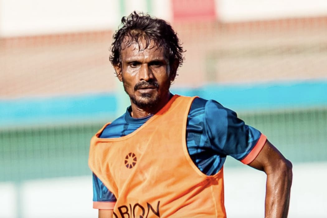 ހޮކޭ އަށް އަނިޔާވެގެން އިއްޔެގެ މެޗުގެ ތެރެއިން އަށިގަނޑުގައި ދަނޑުން ބާލަނީ.---- ފޮޓޯ: ރާއިފް ޔޫސުފް / އަދަދު ސްޕޯޓްސް