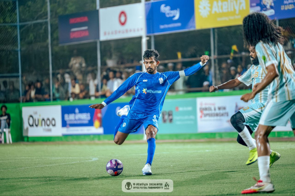 މިހާރު ކުރިއަށްދާ ޒިގްޒެގް އިންޓަރ އޮފީސް ފުޓްސަލް މުބާރާތުގެ ސެމީ ފައިނަލުގެ ފުރަތަމަ މެޗުގައި މިރޭ ތަރިން ހިމެނޭ ތަޖުރިބާކާރު އާރްއާރުސީ ބަލިކުރުމަށްފަހު ކުޅުދުއްފުށީ ޕޯޓް ރެކްރިއޭޝަން ކުލަބް ފައިނަލުގެ ފުރަތަމަ ޖާގަ މިރޭ ހޯދިއިރު ދެވަނަ ސެމީގައި ސީކޭއާރުއެޗް ބަލިކޮށް އެމްޓީސީސީ ފައިނަލަށް ދަތުރުކޮށްފި އެވެ.