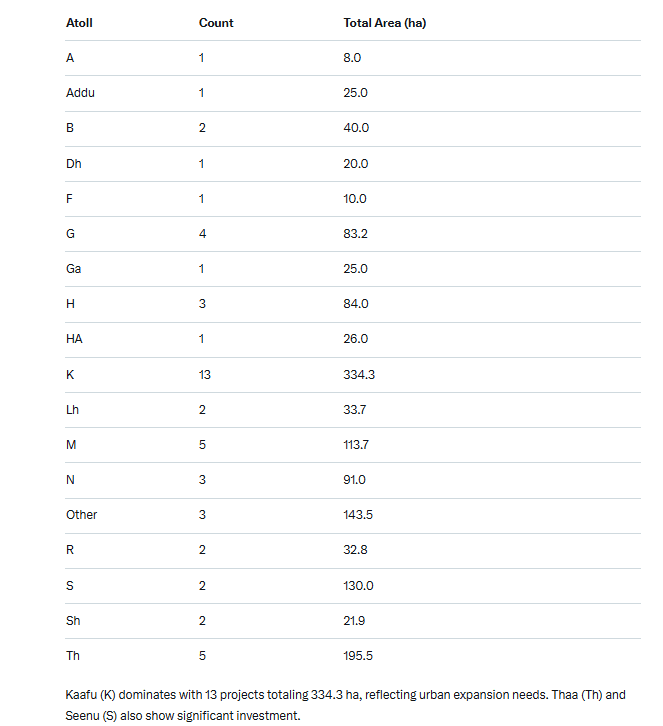 ހައުސިން މިނިސްޓްރީގެ ހިސާބުތަކަށް ބަލާއިރު، 2007 ވަނަ އަހަރުން ފެށިގެން މިހާތަނަށް 1404 ހެކްޓަރުގެ ބިން ރާއްޖޭގައި ވަނީ ހިއްކައިފަ އެވެ. އެއީ 14 އަކަ ކިލޯމީޓަރުގެ ބިމެވެ. އެއީ މ. މަޑުއްވަރި އާއި އެ އަތޮޅު ދިއްގަރުގައި ހިއްކި ބިން ނުހިމަނަ އެވެ.