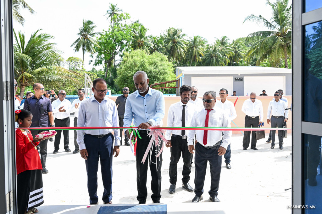 During the visit, the President witnessed the groundbreaking on a new mosque, police station and a fitness and recreation centre in Noomaraa before officially inaugurating the new island council secretariat building.