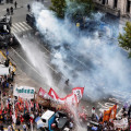 Security forces struggled to control crowds in a central square of downtown Buenos Aires, firing water cannons and rubber bullets at protesters who threw petrol bombs, stones and water bottles.