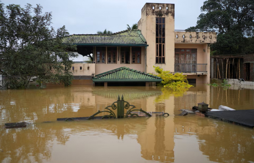 A house partially submerged by floods stands in an area affected by flood, following heavy rainfall in Malwana, Sri Lanka, November 29, 2025. (Reuters Photo/Thilina Kaluthotage)