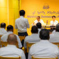 Members vote at the MDP's National Assembly meeting held in Male' on November 8, 2025. (Sun Photo/Moosa Nadheem)