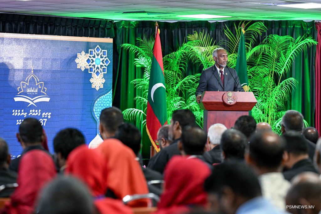 President Dr Mohamed Muizzu has announced a sweeping recalibration of national priorities, declaring that the cultivation of a society grounded in reverence for the Holy Quran constitutes the Maldives’ foremost developmental imperative. Addressing the awards ceremony of the 37th National Holy Quran Recitation Competition, the president asserted that moral and religious advancement must supersede material progress.