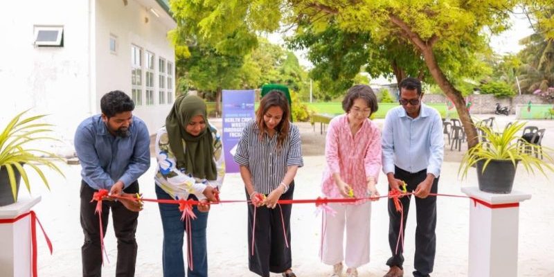 The official inauguration ceremony was held yesterday in Vaikaradhoo. The facility was opened by State Minister of Health Khadheeja Abdul Samad Abdulla, WHO Representative Ms. Paeden, CEO of Kulhudhuffushi Regional Hospital Nazima Ali, Senior Political Director of Vaikaradhoo Health Centre Abdulla Nishan, and President of Vaikaradhoo Council Abdulla Zameer.