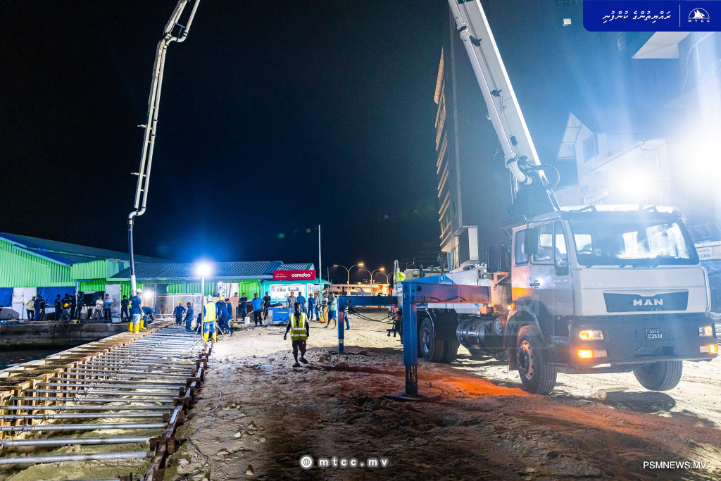 Maldives Transport and Contracting Company (MTCC) says it has completed concrete works for 55 meters of the quay wall under the Malé North Side Boduthakurufaanu Road Development Project.